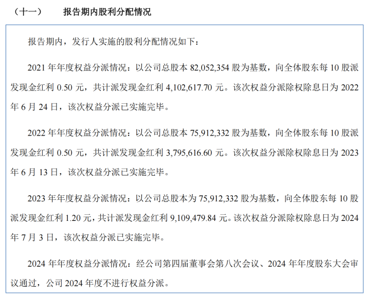根据申请文件,奥图股份2022年至2024年均进行现金分红,三年合计分红1700万元。
